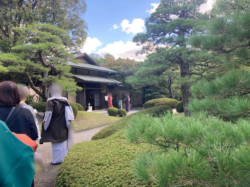 Our final stop was the Ohori Park Japanese Garden Tea Ceremony Hall (Chakaikan), located within the park grounds. The building’s traditional architecture looked stunning, especially with all the kimono-clad participants walking around.
