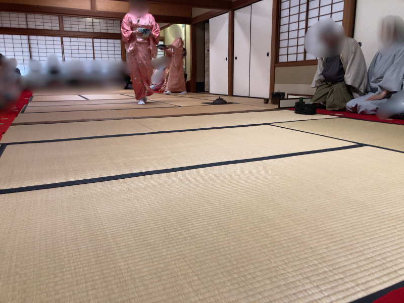 The ceremony began with greetings from the host. Then, they prepared tea for the “shōkyaku” (the main guest who represents all attendees and interacts with the host) and the “jikyaku” (the second guest). If you sit near the front, you can watch this beautiful preparation process up close.
