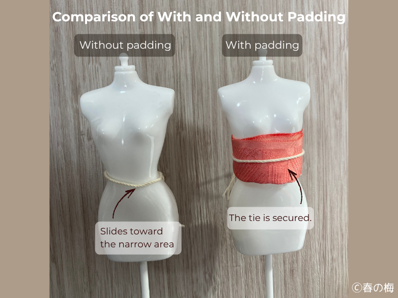 Here’s something most people don’t realize: kimono dressing relies entirely on ties and cords to hold everything together. Without padding, these cords simply won’t stay where you put them.